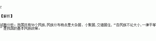 C、各民族均匀分布 D、民族分布“大杂居、小聚居”