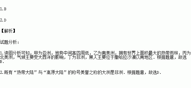 2.有“高原大陆”“热带大陆”之称的大洲( )