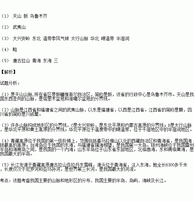 (1)A是 (山脉),所在省区的简称是 ,行政中心是 _______ 市 。