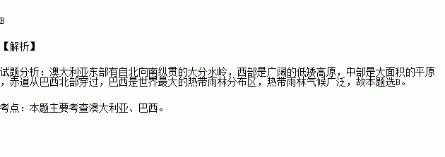 关于图中澳大利亚和巴西的自然环境,描述正确的是