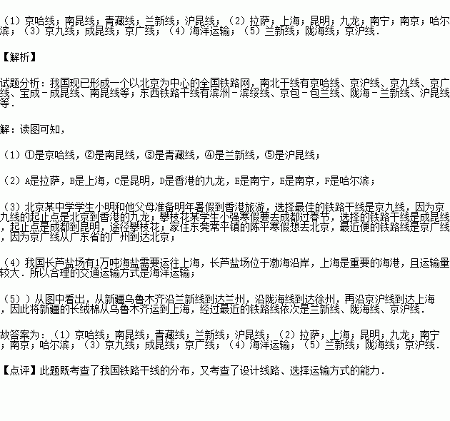 (3)北京某中学学生小明和他父母准备明年暑假到香港旅游,选择最佳的铁路干线是 ;