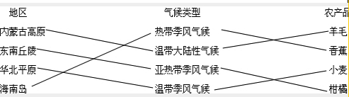 点评:考查我国主要地理区域的气候类型及主要农业物产,要理解记忆.