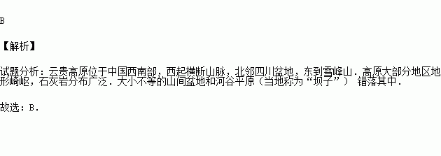 我国四大高原中,地形崎岖,石灰岩发布广泛,大小不等的山间盆地和河谷平原错落其中,这个高原是( )