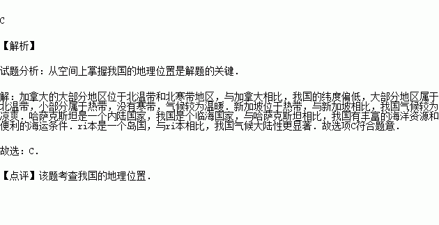 与世界上许多国家相比,我国的地理位置有很多优越性.下列说法正确的是( )