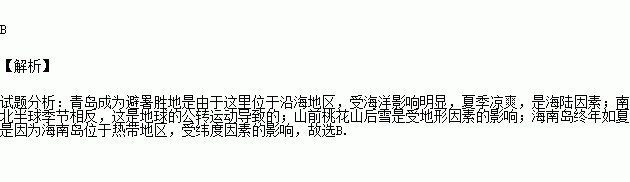 A、青岛避暑胜地——地形因素
