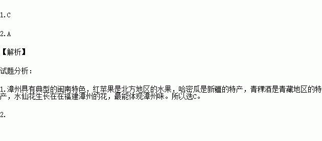 A.红苹果 B.哈密瓜 C.水仙花 D.青稞酒