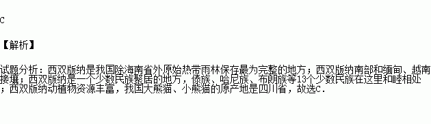 D.西双版纳动植物资源丰富,是我国大熊猫、小熊猫的原产地
