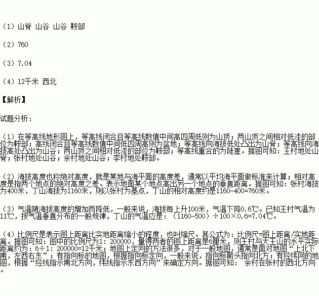 (4)王村与大王山的水平实际距离约为 。余村在张村的___________方向。