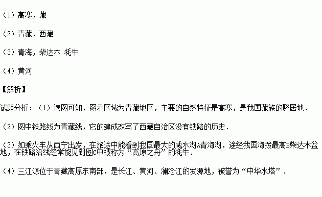 £¨3£©Èç³Ë»ð³µ´ÓÎ÷Äþ³ö·¢£¬ÔÚÂÃ;ÖÐÄÜ¿´µ½ÎÒ¹ú×î´óµÄÏÌË®ºþA ºþ£»Í¾¾ÎÒ¹úº£²¦×î¸ßB ÅèµØ; ÔÚÌúÂ·ÑØÏß¾³£Äܼûµ½Í¼CÖб»³ÆÎª¡°¸ßÔÖ®ÖÛ¡±µÄ £¨ÉüÐóÃû³Æ£©¡£
