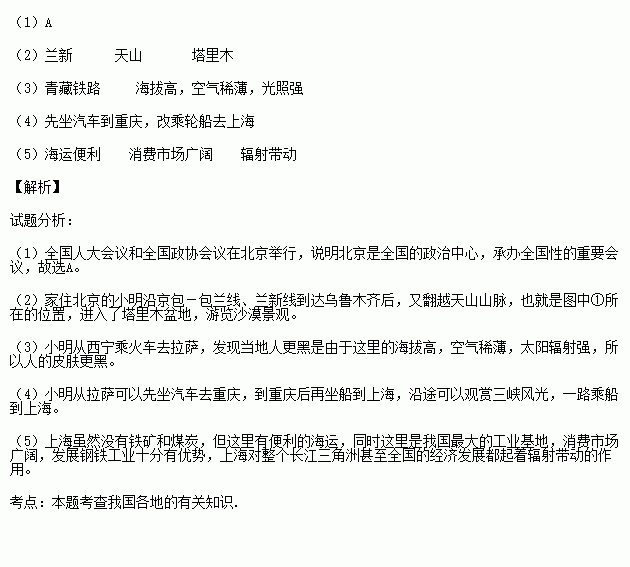 (1)第十一届全国人民代表大会第五次会议和第十一届政协全国委员会第五次会议,分别于2014年3月5日—14日和3月3日—13日在北京召开。由此说明北京的城市职能之一是( )(1分)