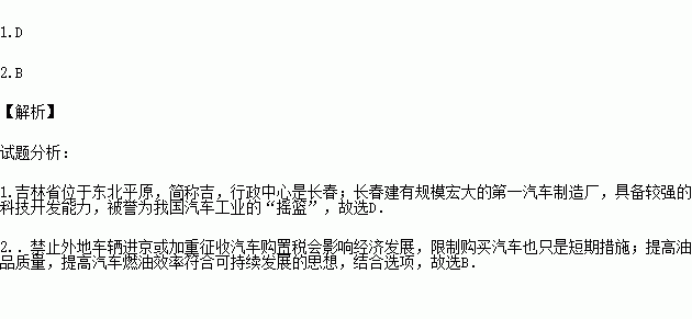D.东北地区是我国汽车工业发展的摇篮