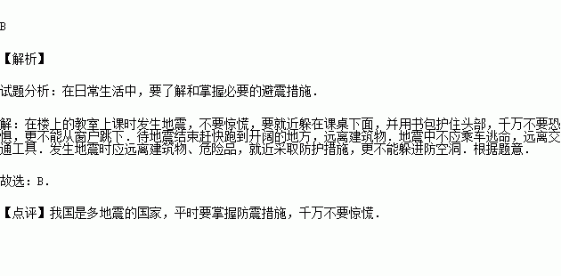 B.护头下蹲并躲在桌子旁边,震动结束后快速撤离