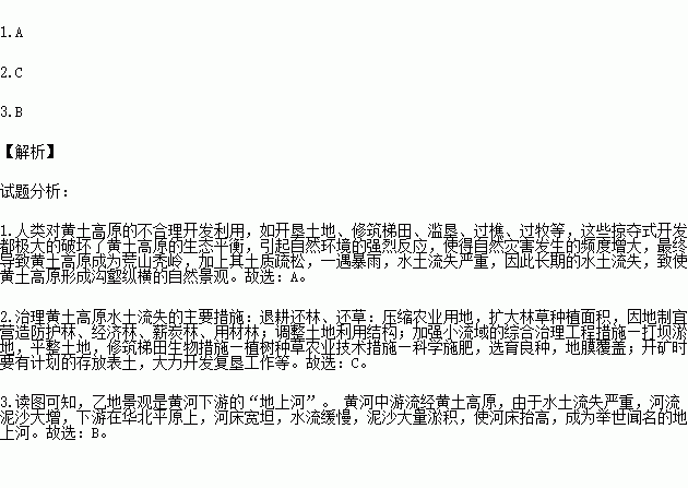 1.甲地沟壑纵横景观形成的主要原因是( )