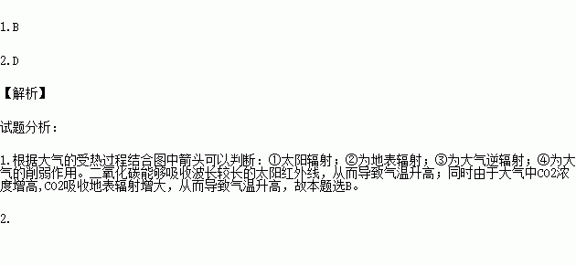 1.二氧化碳浓度升高导致全球变暖,其原理与左图中哪些数字代表的含义有关