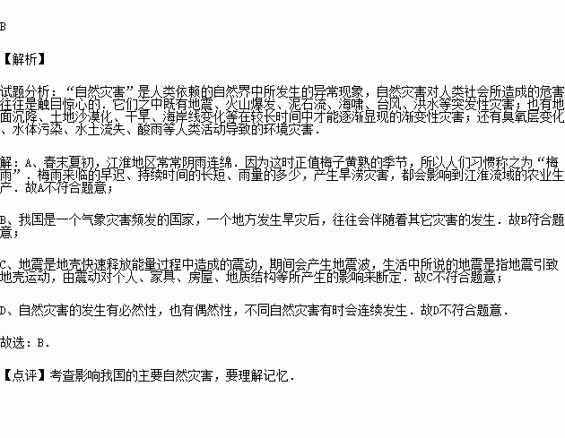 有关自然灾害的说法,错误的是( )