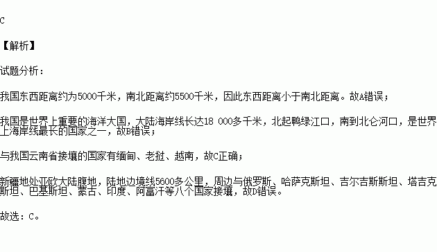 C. 与我国云南省接壤的国家有缅甸、老挝、越南