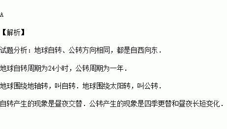 A.日月自东向西绕地球转 B.地球公转