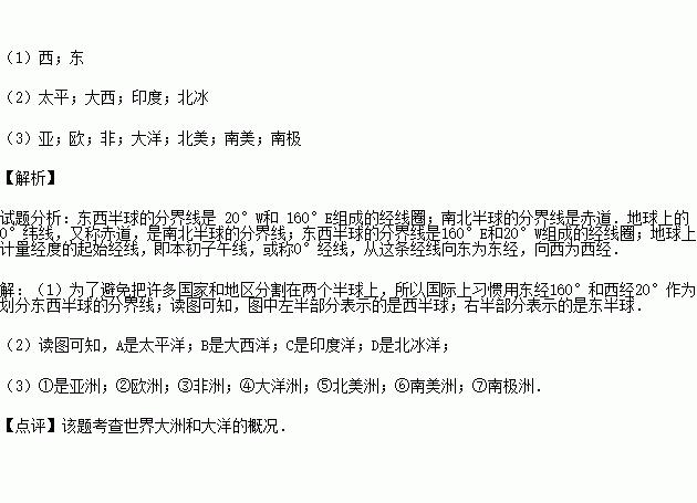 C.印度洋、大西洋 D.太平洋、北冰洋