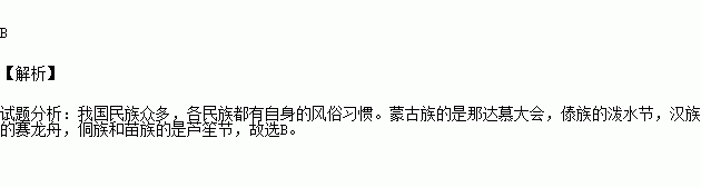 C.赛龙舟——汉族 D.芦笙节——侗族、苗族