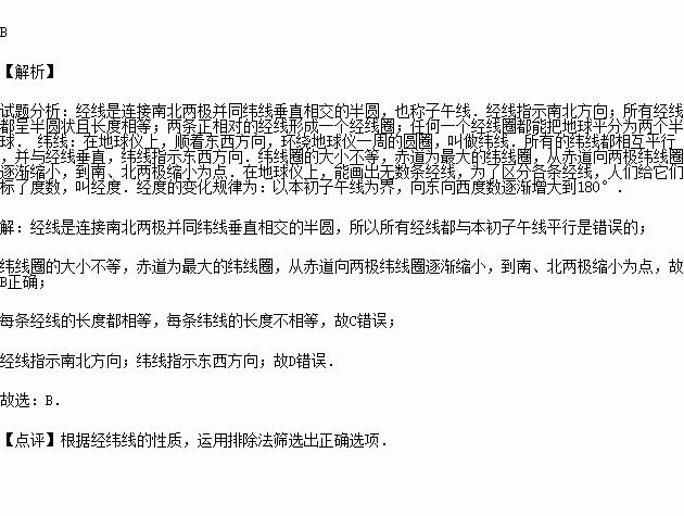 科目:初中地理 来源:2015-2016学年江苏无锡江阴南菁高中实验学校七年级)期末地理试卷(解析版) 题型:选择题