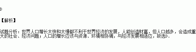 D.人口的增长应该与资源、环境相协调,与经济发展相适应