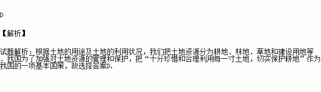 D.十分珍惜和合理利用每一寸土地,切实保护耕地