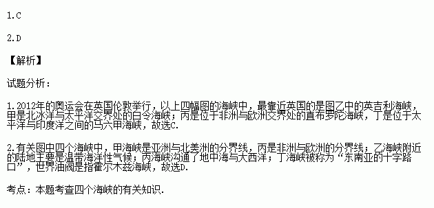 1.2012 年的奥运会在英国伦敦举行,图中最靠近举办地的海峡是