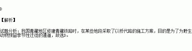 青藏地区修建青藏铁路时,在某些地段采取了以桥代路的施工方案,主要原因是: