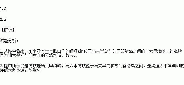 1.下图东南亚“十字路口”的咽喉A是( )