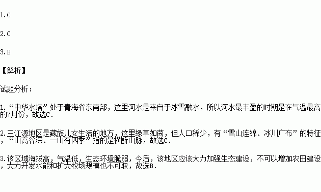 1.“中华水塔”河水丰盈的时期,最可能在( )
