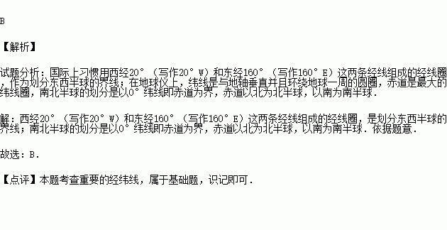 C.0°纬线、20°W和160°E经线