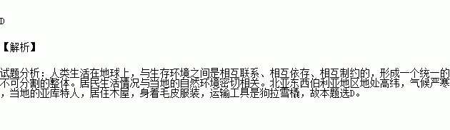 C.西伯利亚地区气候严寒,生活在这里的人们居住帐篷,身着宽大的袍子过着游牧生活