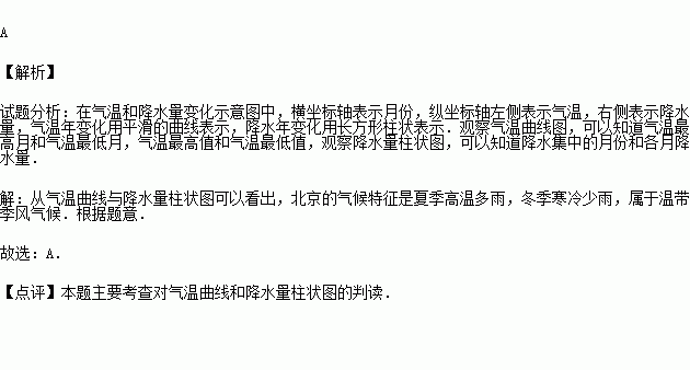 阅读并分析北京气温年变化曲线和逐月降水量图,该气候特点可归纳为( )