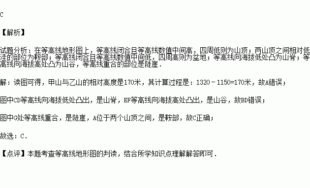 C.G是陡崖,A是鞍部