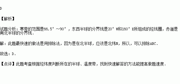 下列地点,符合寒带、东半球、北半球三个条件的是( )