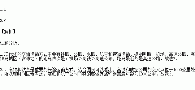 1.据图判断机场、高速公路、高铁离城区(客源地)距离最近的是( )