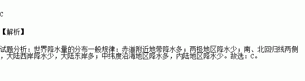 关于世界降水量分布的一般规律,叙述正确的是( )