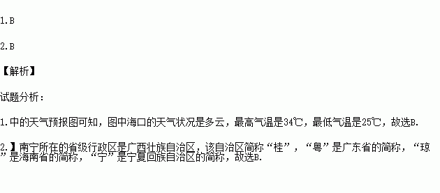 A.阴,气温25-34℃ B.多云,气温25-34℃