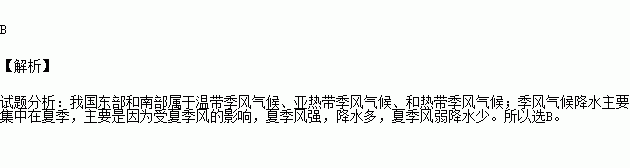 B、季风气候各月降水平均,一般没有旱灾涝灾