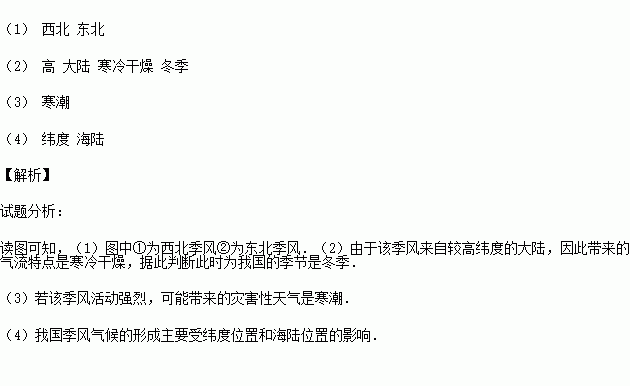 (1)图中①为__________(风向)季风②为__________(风向)季风。