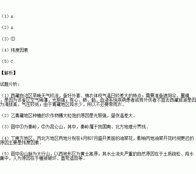 (4)丁、丙两地分别在4月和7月盛开美丽的油菜花,影响丙地油菜开花时间更迟的原因主要是 。
