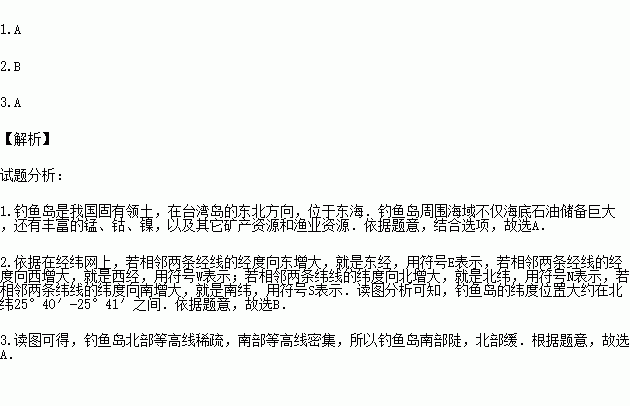 读右图“钓鱼岛地形图”完成下列各题。