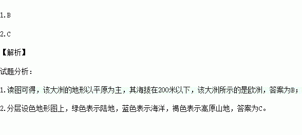 2.在分层设色地形图上,该洲颜色大部分是( )