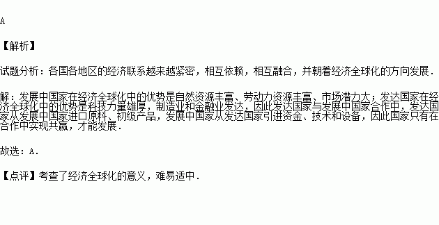 B.发展中国家从发达国家引进资金、技术和设备