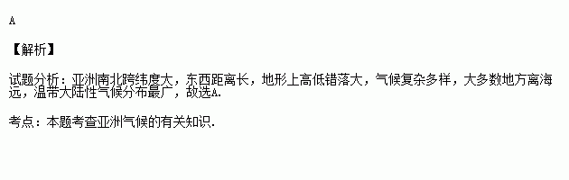 (2)亚洲气候具有 、 气候显著和 气候分布广的特点。