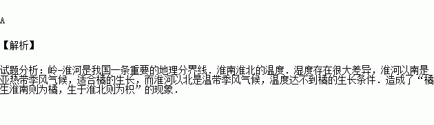 古人云:“橘生淮南则为橘,生于淮北则为枳,叶徒相似,其实味不同。”这种差异形成的主要原因是( )
