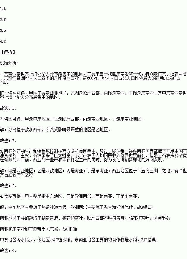 3.上面四个地区中,位于“五海三洲”之地、有“世界石油仓库”之称的地区是( )