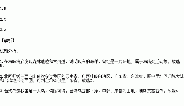 1.②海峡海底发现有森林遗迹和古河道,这说明