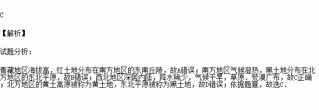 D.北方地区的黄土高原和东北平原被称为黄土地