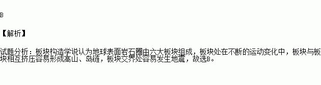 ①地球的坚硬岩石表层是由六大板块组成 ②板块处在不断的运动变化中